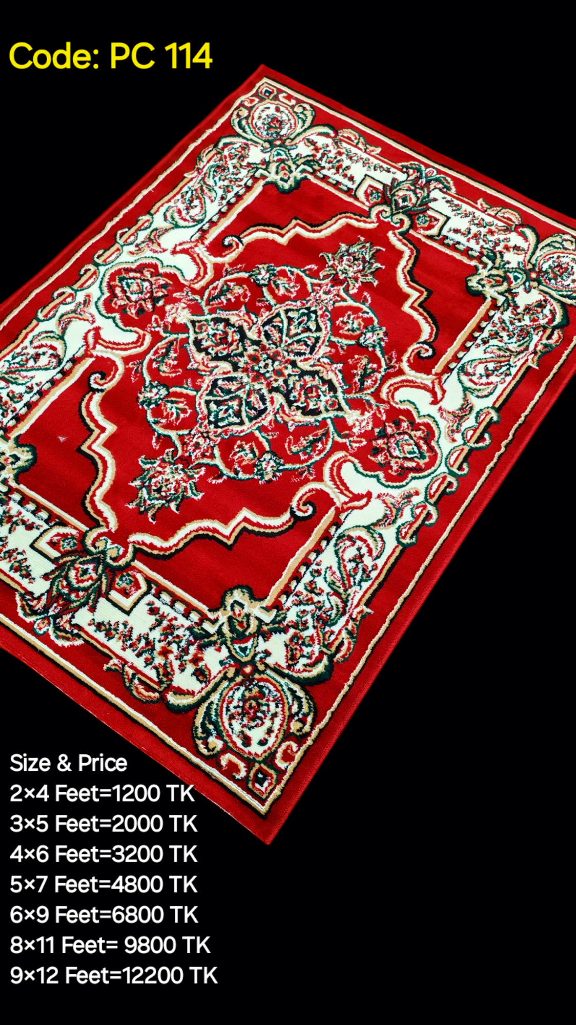 কার্পেটের অনেক গুলা সাইজ আছে। সাইজ ভেদে দামের ও পরিবর্তন হবে। আমাদের কাছে আছে:
