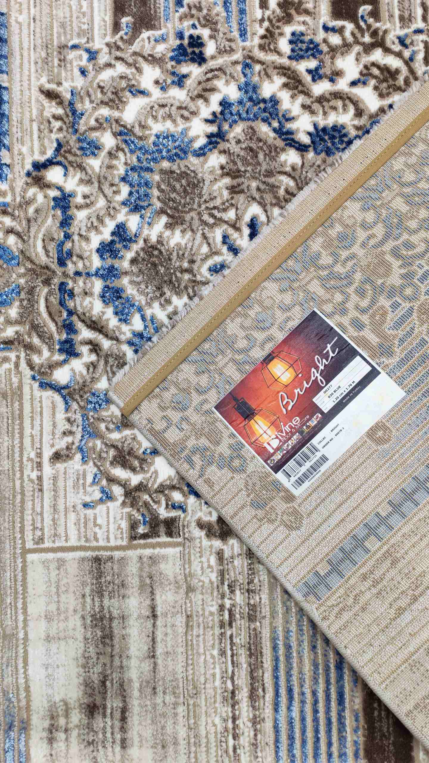 বিলাসবহুল কালার প্যালেট: নীল (Blue), সোনালী-বাদামী (Golden Brown) এবং অফ-হোয়াইট রঙের এই মিশ্রণটি যেকোনো দামী ফার্নিচারের সাথে রাজকীয় বৈপরীত্য তৈরি করবে।